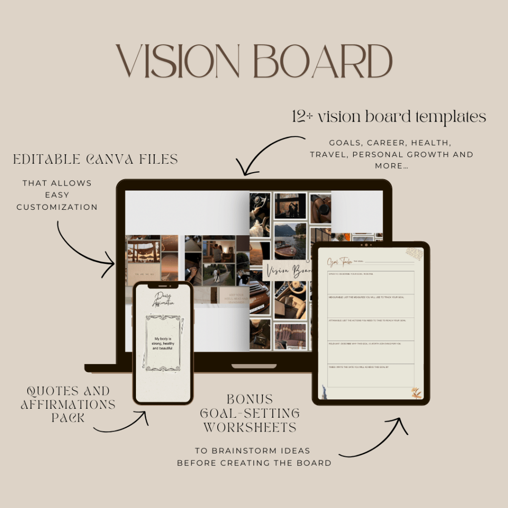 Here’s the truth: your dream life is 100% within reach—you just need the right tools to get there. A digital vision board isn’t just a pretty collage; it’s your daily reminder to keep working toward the life you’ve always wanted.