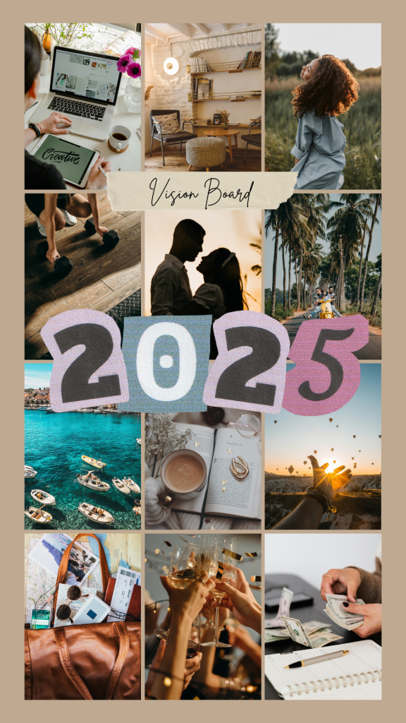 Instead of juggling a million ideas, a vision board helps you see all your goals in one place—career, health, travel, relationships, you name it.